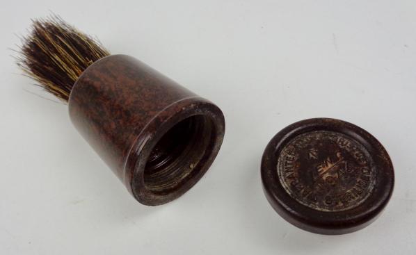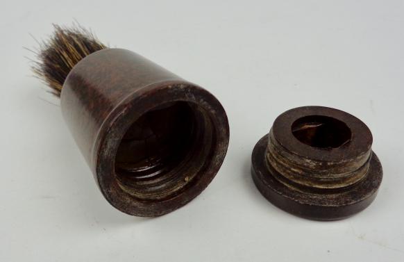 Very nice and rare British WW2 bakelite made “Escape” shaving brush. The bottum of the brush could be opened, so its made to hide an miniature escape compass. Nice an rare to find item in very good condition.