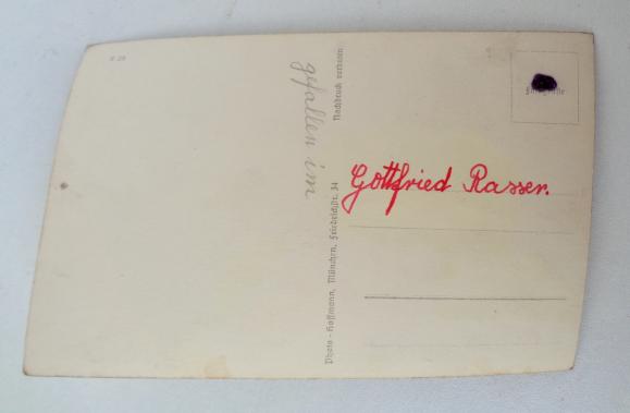 Third Reich Postcard Knights Cross Recipient “Kapitänleutnant Endrass” Knights Cross and Oakleaf. Nice postcard in very good condition.