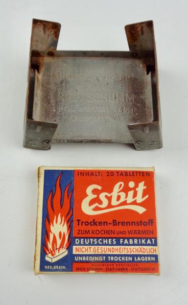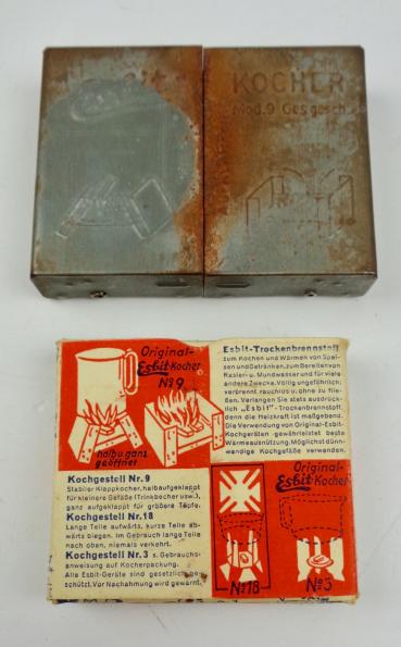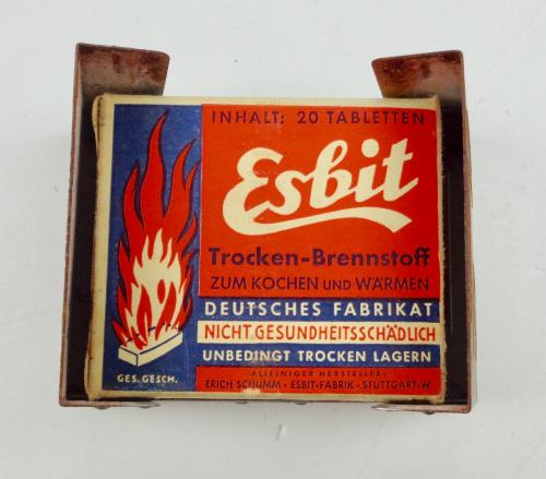 Wehrmacht Esbit Cooker with original Fuel Blok Original WW2 Esbit cooker with its original fuel blok In good condition.