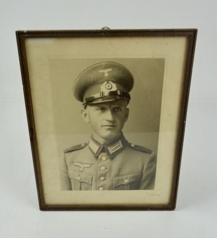 Framed Photograph of a Wehrmacht Soldier Very nice original framed early photograph of an early Wehrmacht soldier with his visor cap. In very good condition.