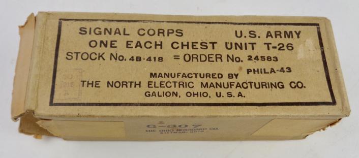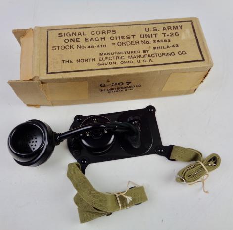 US WW2 Signal Corps T-26 Chest Unit Mint US WW2 T-26 chest unit (Microphone) in its original carton box. Made by "Galion Ohio, U.S.A." Dated "1943" Impossible to upgrade!!!