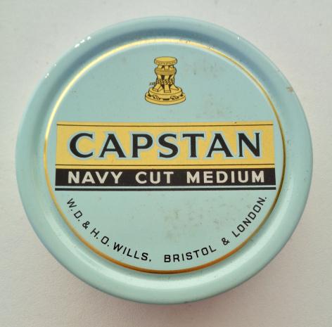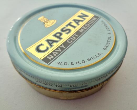 British WW2 Tabaco Can (Capstan Navy Cut Medium) Very nice metal can with content of “Capstan” tabaco Made by “W.D. & H.O. Wills, Bristol & London” In very good condition.