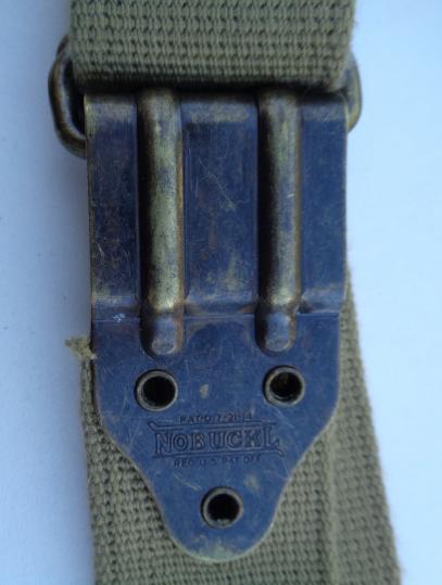Very nice light used US WW2 Tompson machinegun sling. Nicely maker marked "Nobuckl"