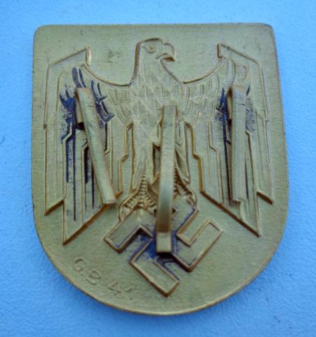 Kriegs Marine Tropical Pit Helmet Shield Very nice aluminium made Kriegs Marine tropical pit helmet eagle shield. Maker marked “G.B.” And dated “1941” In mint condition.