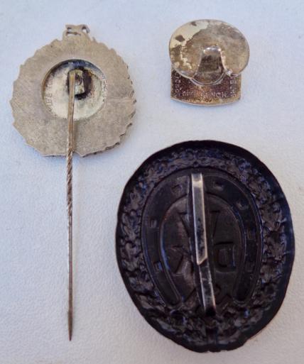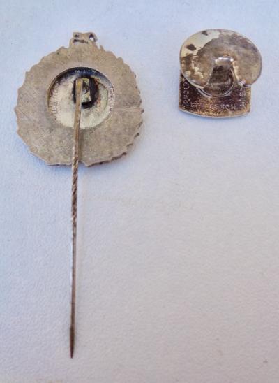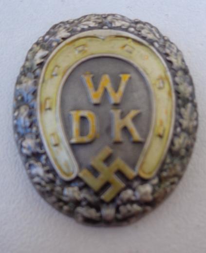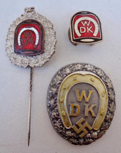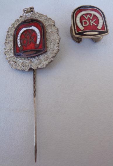 Cap Badge and Stick Pins WDK WDK badge “Waffenring Deutscher Kavalery” With “25” year member stick pin and tunic button hole badge of the German Cavalry Association. In very good condition.