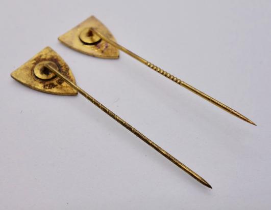 2 Stick Pins of the Kyffhäuser Bund One stick pin with swastika and one with the tri collour of the German flag. Both marked “Ges. Gesch.” In very good condition.