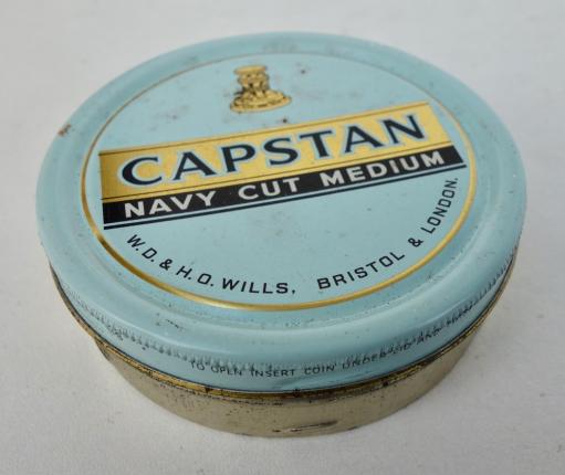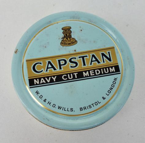 British WW2 Tabaco Can (Capstan Navy Cut Medium) Very nice metal can with content of “Capstan” tabaco Made by “W.D. & H.O. Wills, Bristol & London” In very good condition.