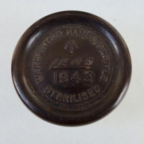Very nice and rare British WW2 bakelite made “Escape” shaving brush. The bottum of the brush could be opened, so its made to hide an miniature escape compass. Dated “1943”