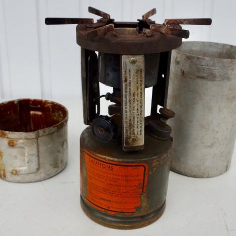 Nice used US WW2 Coleman stove in its original aluminium container. The “Coleman” stove is in working condition. And complete with its original tools.