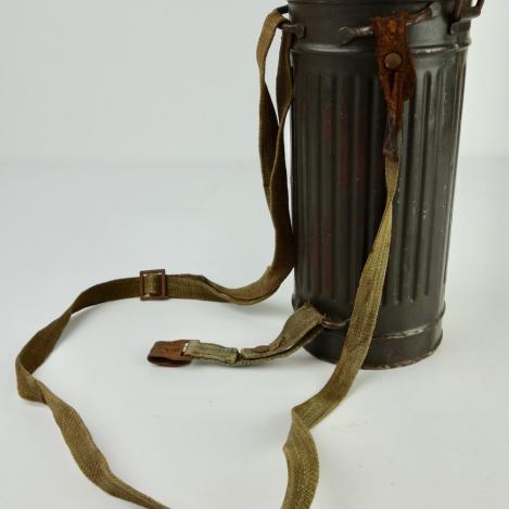 Nice used Wehrmacht M31 gasmask cannister with M31 gasmask complete with its original straps