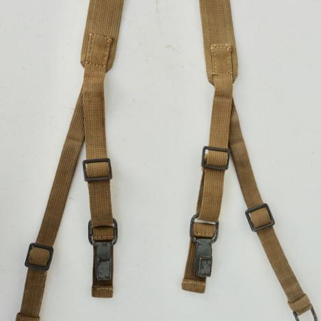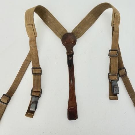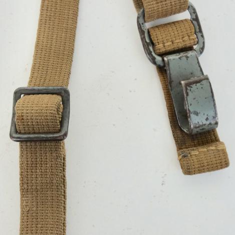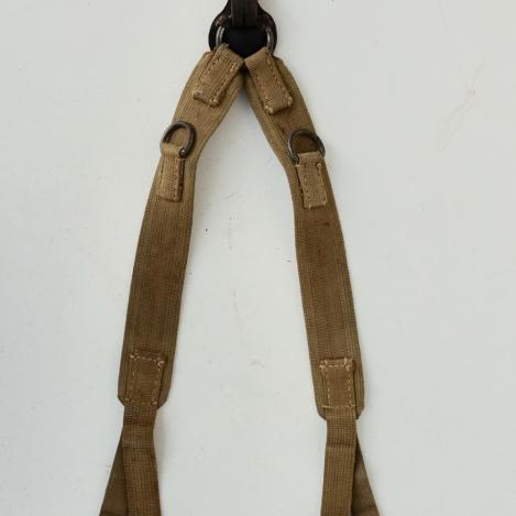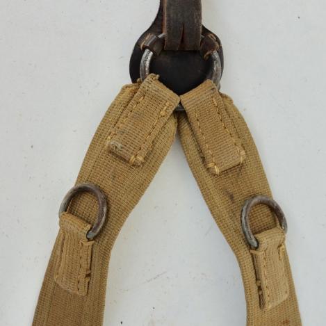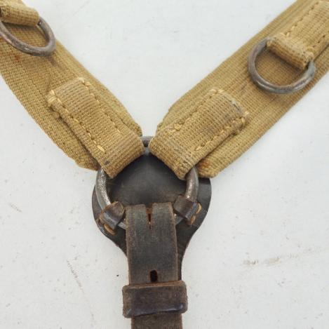 Nice used tropical combat Y strap with leather back strap, Probably wartime replaced. These tropical Y straps where originaly desiged for the German Afrika Korps “Deutsches Afrika Korps” but were used in the Westfront and the Russian front aswell.