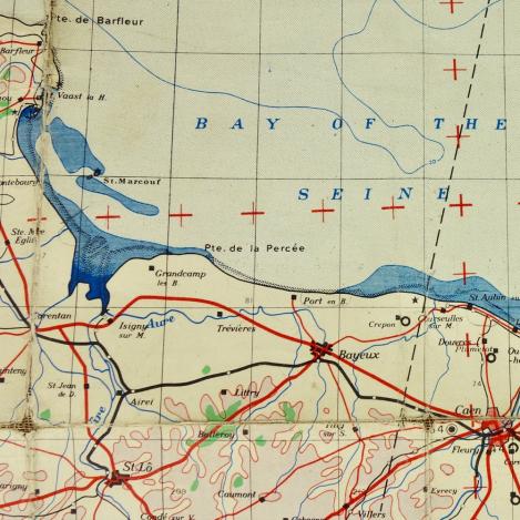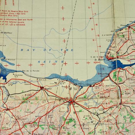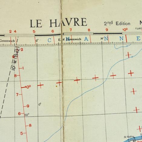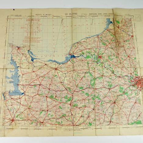 British WW2 Normandy Map Very nice paper on canvas British WW2 “Normandy” (La Havre) map, dated “1942” In used but good condition.