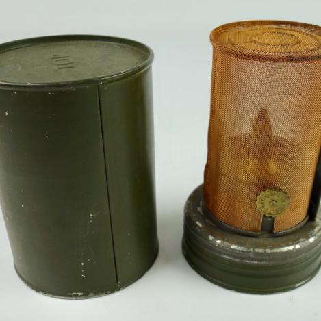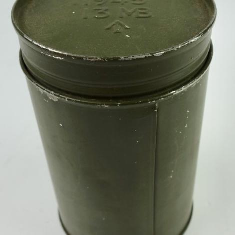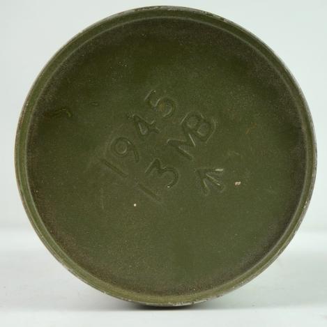 British WW2 Heater Very nice British WW2 metal heater. Dated “1945” and marked “13 MB” Nicely marked with the British “Broad Arrow” metal can in 99% of its original camo paint. In very good condition.