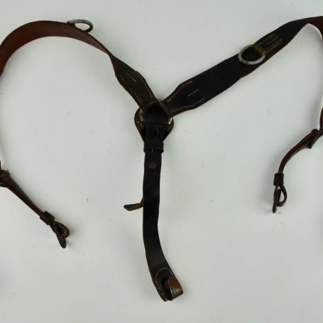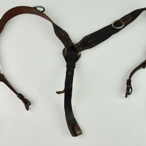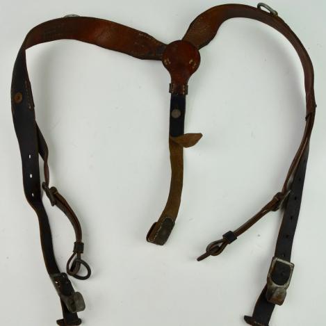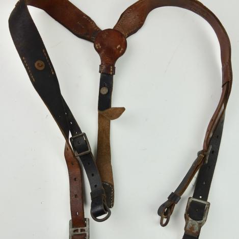 Wehrmacht/WaffenSS combat Y Strap (Tragenstell) Nice used Wehrmacht/WaffenSS leather combat Y strap (koppel tragenstell) marked with maker code and dated “1944” in used but good condition.
