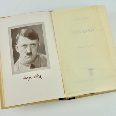 Mein Kampf (Mariage Version) Nice used Mein Kampf, Adolf Hitlers book. This is a mariage version from “1942” which was given by the mayor to married couple’s as a present. In used but very good condition.