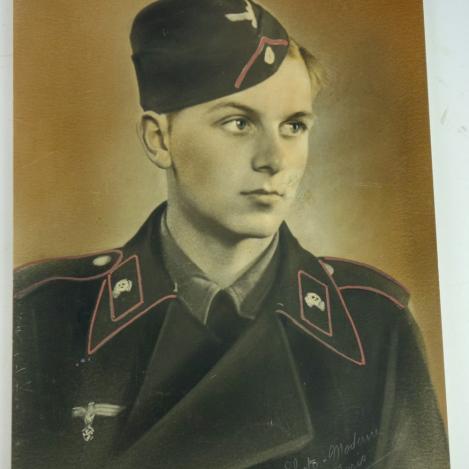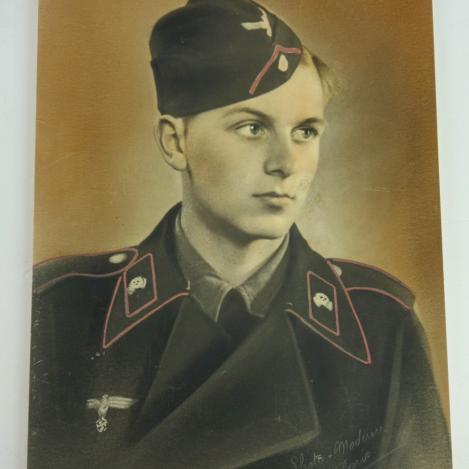 Portrait Photograph of a Wehrmacht Panzer Soldier Wonderful big size portrait photograph of a Wehrmacht Panzer soldier. The photograph is made in “Paris” In very good condition.