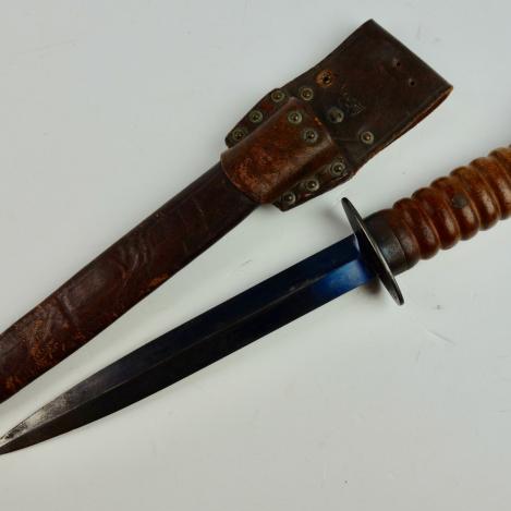 Very nice Dutch WW2 combat dagger the so-called "Storm Dolk" in original leather scabbard.