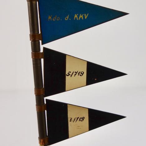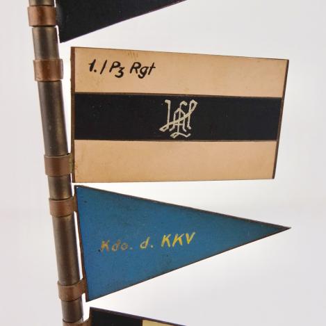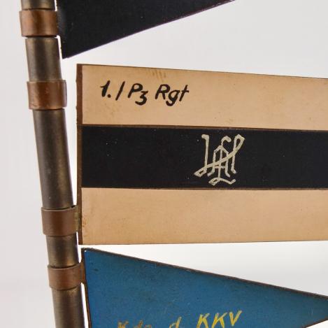 Sort of trench Art. Flag Pole with Regt. Flags/Banners