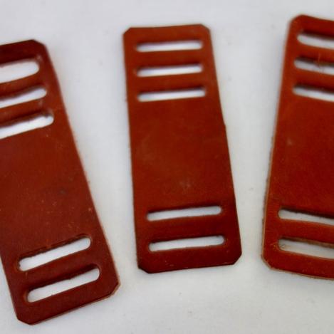 Wehrmacht re-enforcement Leathers Gasmask Strap Mint un-issued set of three re-enforcemend leathers for Wehrmacht gasmask cannisters straps. In mint condition. Impossible to find!!!