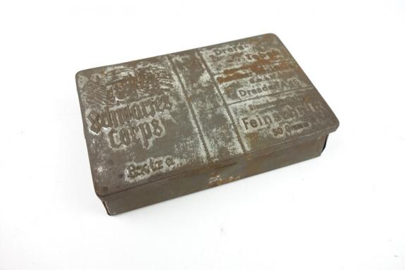 Very nice Algemeine SS metal Tabaco Box “Das Schwarzes Corps” nice detailed metal box In very good condition. Rare to find item!!!