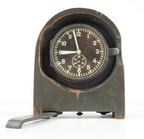 The wooden clock frame is in 98% of its original luftwaffe camo paint, the nice working clock is made by “Junghans” These so-called “Funker Uhr’s” where used by radio opperators, so they could write down the time a message came in or was sent!