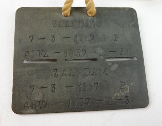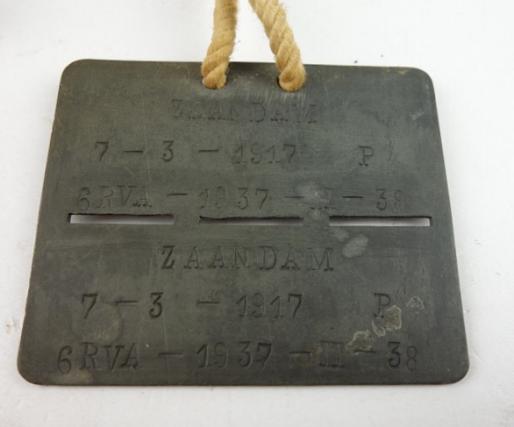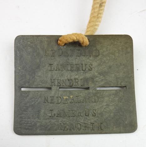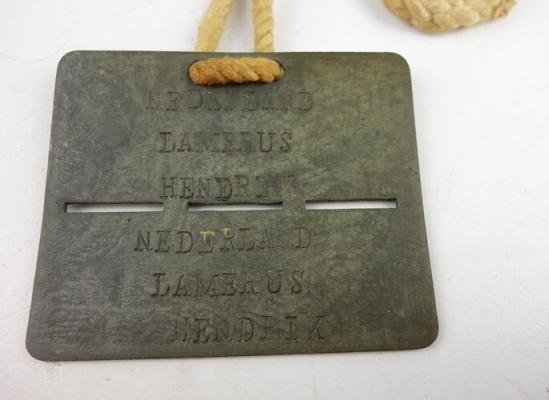 Dutch WW2 Dog-Tag On name of “Hendrik Lamerus” Who served with “6 RVA” which is “6 Regiment Veld Artillery” Hendrik was born on “7-3-1917, Zaandam” With original cord and in very good condition.