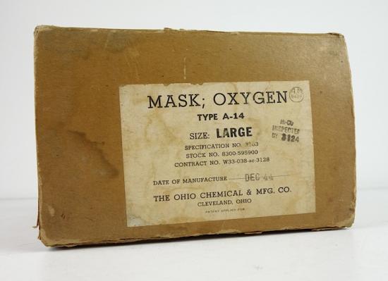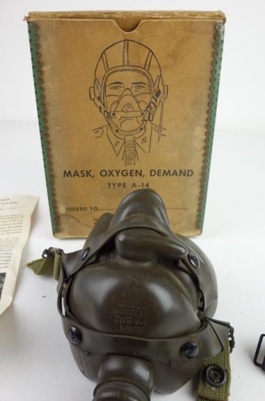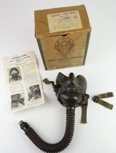 Nice condition USAAF A14 Oxygen mask in its original clibboard box and with instrucions manual