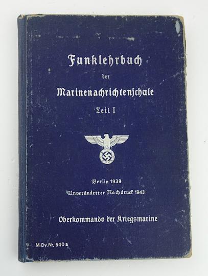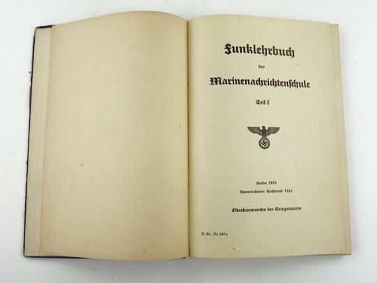Funklehrbuch Kriegs Marine Nachrichtenschule Original training/school book of the Kriegs Marine Signal School. Dated “1943” Ober Kommando der Marine. In used but good condition.