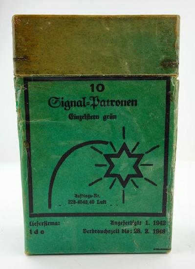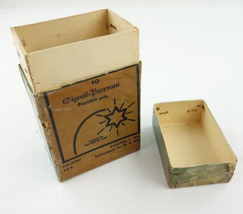 Very nice and rare to find cartboard packaging for ten singel green star flares for the Wehrmacht flare guns.