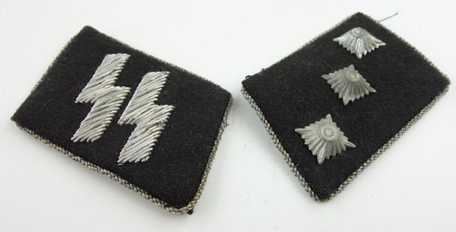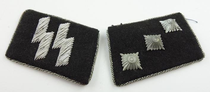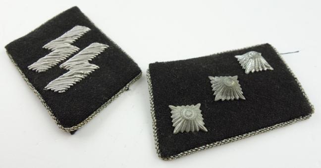 Belgium made WaffenSS Officers Collar Tabs Nice set of Belgium made WaffenSS Officers collar tabs in the rank of “SS Untersturmfuhrer” In very good condition.