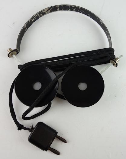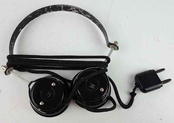 Wehrmacht Transmitter/Receiver Headphone Set Very nice early headphone set, nicely “Waffen Ambt” stamped. With its original kabel and plug. In very good condition.