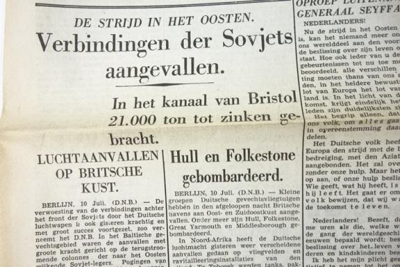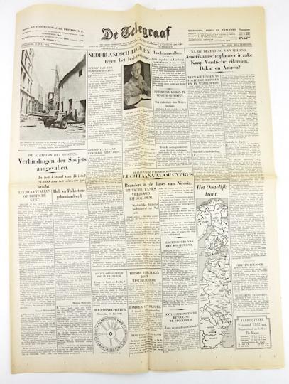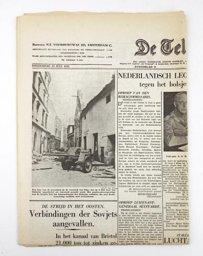 Nice Dutch WW2 newspaper “De Telegraaf” dated “July 1941” on the cover a former Dutch General “Seyffardt” which switched from the Dutch to the German Army. “Nederlandsch Legioen tegen het Bosjewisme” in very good condition.