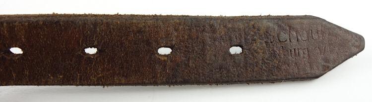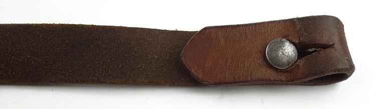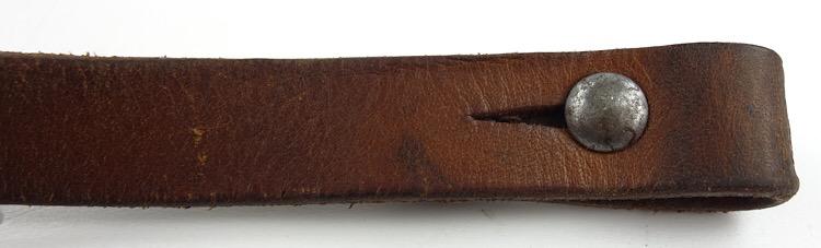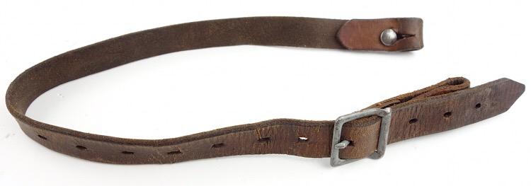 Luftwaffe Leather Combat Helmet Strap Nice used and maker marked (hard to read) Luftwaffe brown leather combat helmet strap Nice used strap in good and smooth condition.