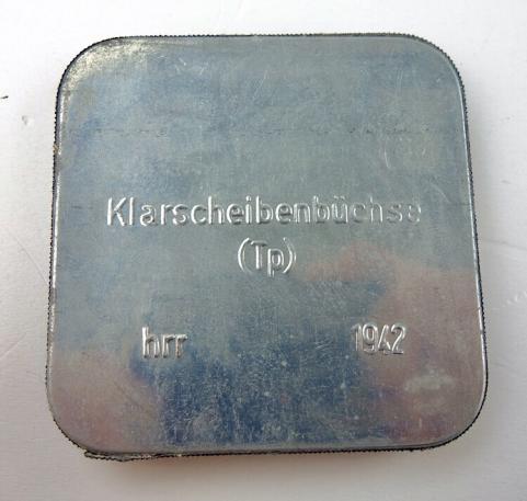 Very nice and rare Wehrmacht M31 gasmask klarscheiben in metal can, made for tropical area's but these metal can's where also used in Luftwaffe Fallschitmjäger gasmask pouches.