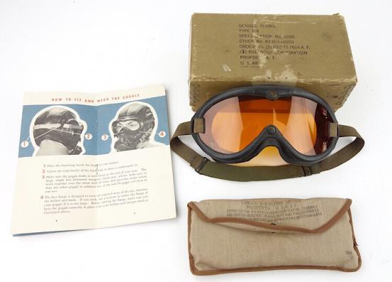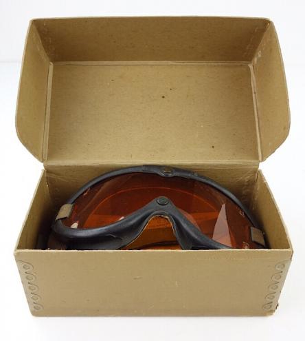 USAAF Flight Goggles in Box Nice orginal carton box with “Polaroid” flight goggles Instruction manual and several collour visors in original pouch. In very good condition. Hard to find!!!