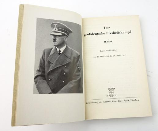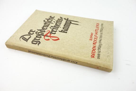 Book Gross-Deutsche Freiheits Kampf part 2 With speeches of Adolf Hitler from Marsh 10 “1940” till March 16 “1941” in very good condition.