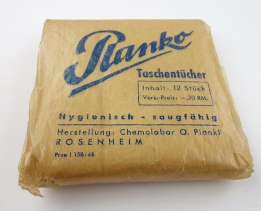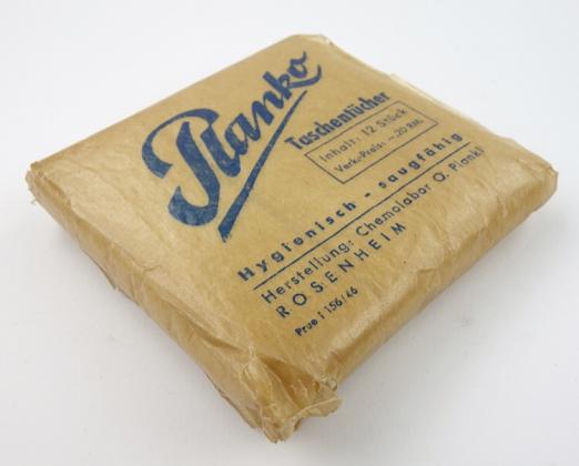 Wehrmacht era Paper Handkerchiefs “Planko” Wehrmacht era paper handkerchiefs 12 pieces in there original paper wrap “Taschentücher” in very good condition.