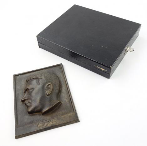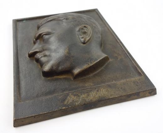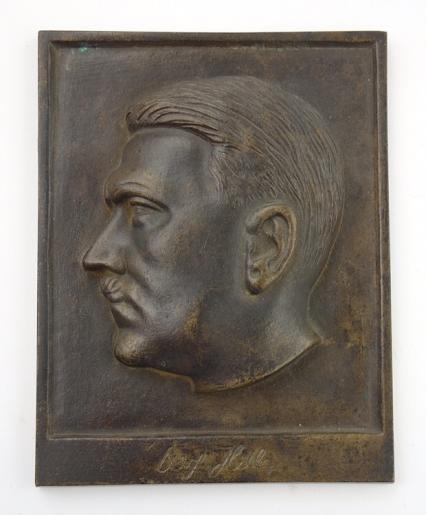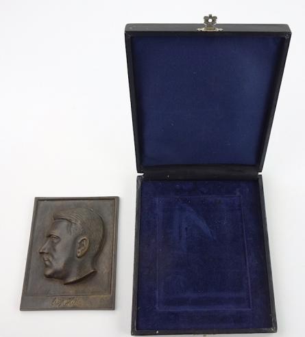 Bronze cased Adolf Hitler Plaque Very nice Bronze made “Adolf Hitler” plaque in its original case. Very well made and in very good condition.