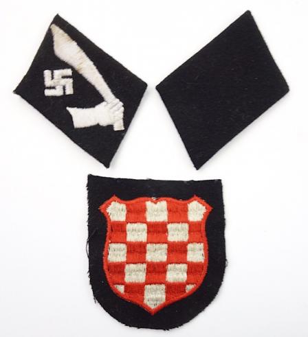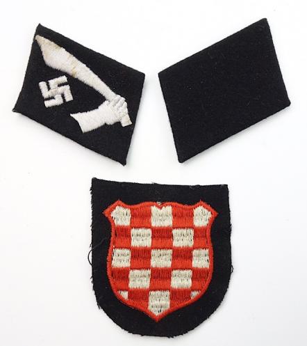 WaffenSS Hanschar (Croätion) Collar Tabs and Sleeve Shield.