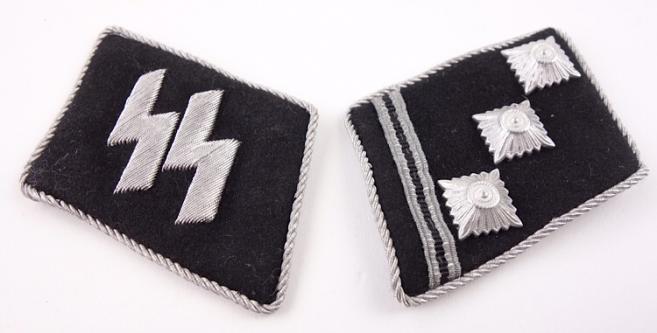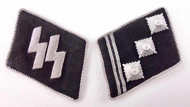 WaffenSS Officers Collar Tabs Fantastic pair of WaffenSS officers collar tabs in the rank of “SS Obersturmfuhrer” Impossible to upgrade!