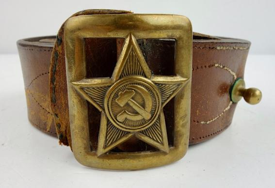 Soviet SSH35 Combat Belt Very nice used early (1935) Soviet leather combat belt With nice brass buckle with soviet red star. In used but very good condition.