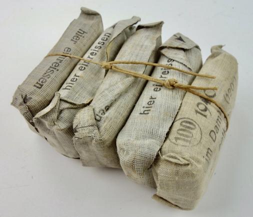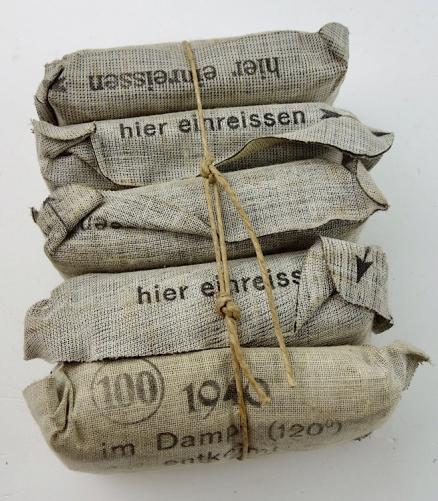 Wehrmacht Bundle of 5 Early 1940 Wound Bandages Very nice untouched original bundle of 5 Wehrmacht wound banqdages, all dated “1940” In mint condition.