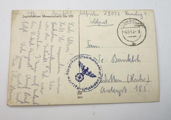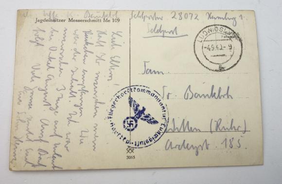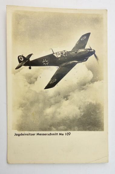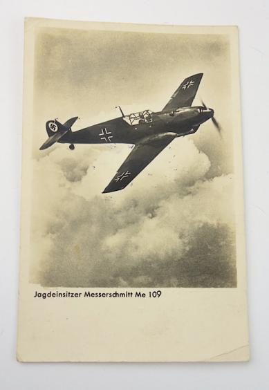German WW2 Postcard with ME109 Nice German WW2 postcard with an ME109 fighter plane. Send home by Wehrmacht soldier to his parents. In good condition.