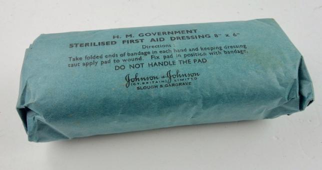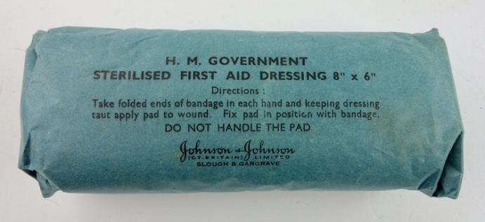 Britich WW2 Wound Bandage Made by “Johnson & Johnson” Nicely marked “H.M. Government” sterilised first aid dressing. In orignal paper wrap. In very good condition.