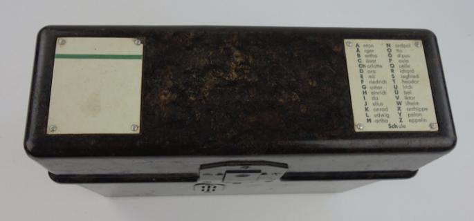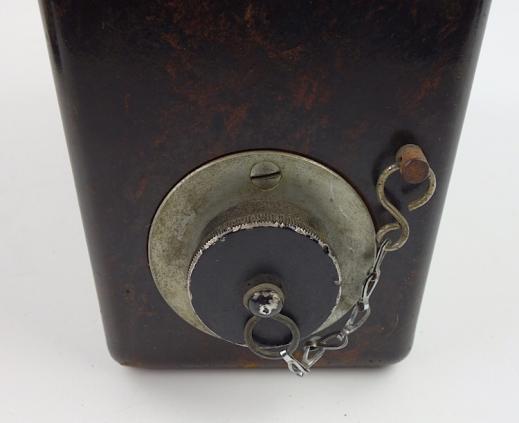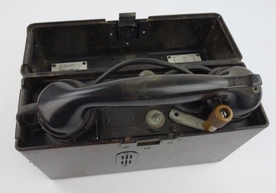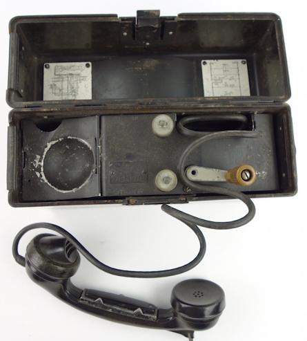 Made by “Siemens” special Kriegs Marine costal Artillery fieldpfone. These special fieldphones had a kabel input for the costal Artillery headphone/microphone set and was used to reseive or to give firing instructions for the costal Artillery.