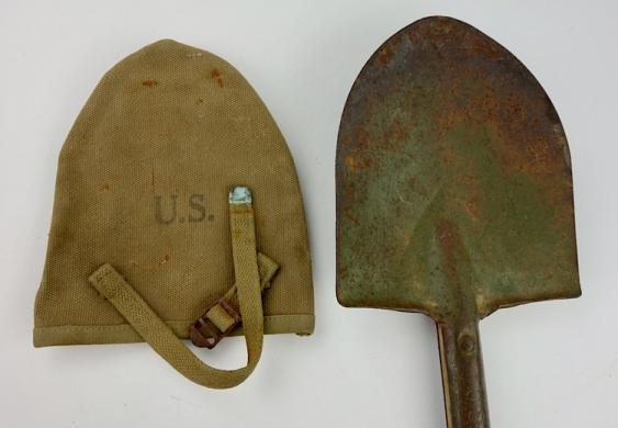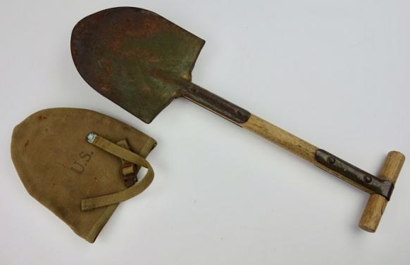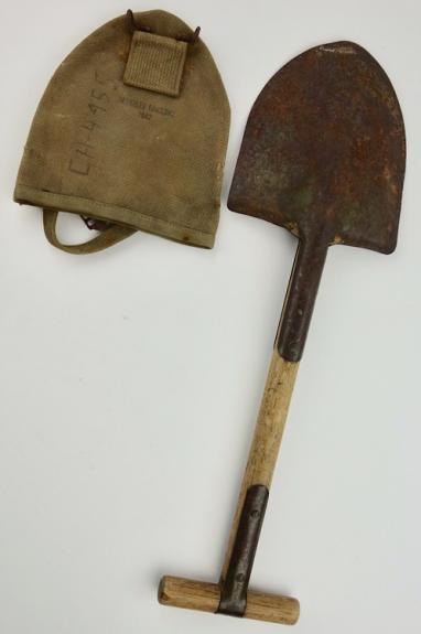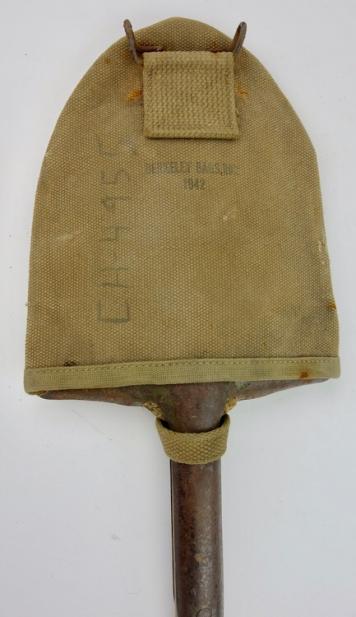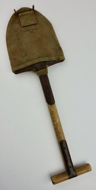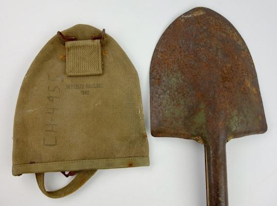 US WW2 T Shovel in original cover Very good US WW2 T shovel with canvas cover, nicely maker marked and dated “1942” Overal in used but good condition.