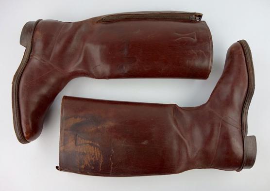 Nice chocolate brown Luftwaffe/Wehrmacht Officers boots. The boots are converted with a zipper for easyer use. Overal nice boots in good mannequin size and in nice used but good condition.