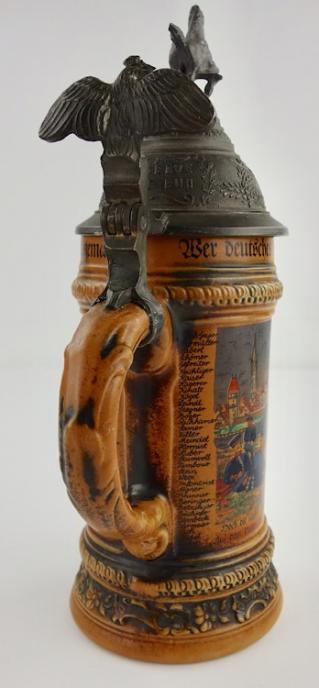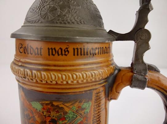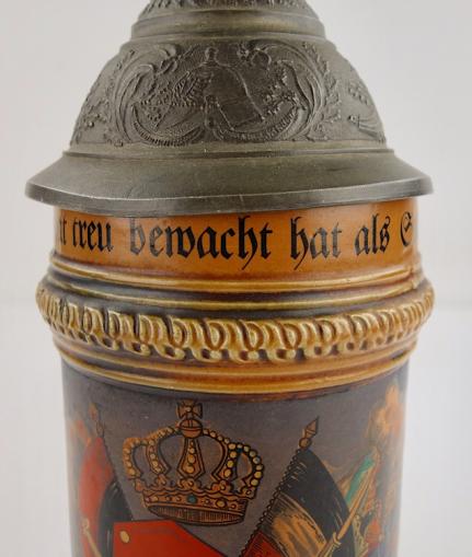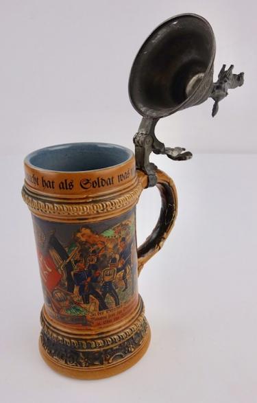 Unfortunately the horse has some damage, but overal its a very nice WW1 beer stein in good condition for a 100 years old!!!