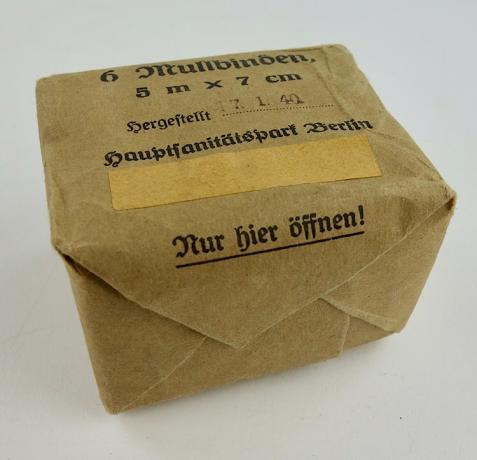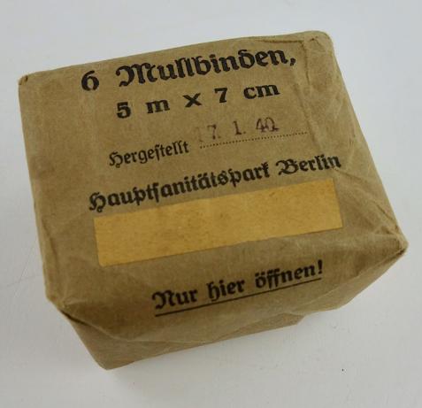 Wehrmacht First Aid Wound Bandage 6 Mullbinden 5 m x 7 cm (Wound Bandage) Dated "17-1-40" In very good condition.