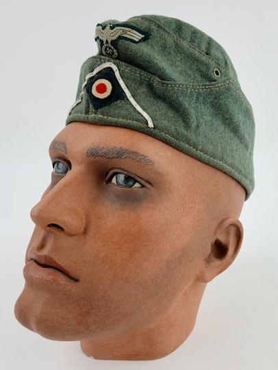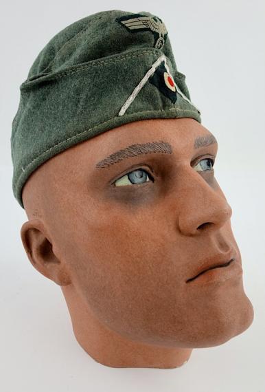 Wehrmacht M40 Infantry Cap “Feld Mutze” nice used Wehrmacht M40 Infantry cap With its original hand sewed BeVo insignia and white (Infantry) soutasch in nice used but very good condition.